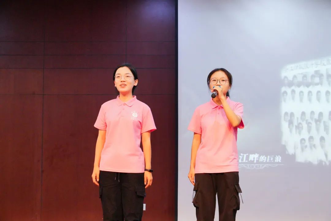 云程发韧,干霄凌云。充满活力的24级新生代表,以他们独特的风采和才华,带来了自己精心创作的诗歌朗诵,以此庆祝我们学校的校庆。凤箫声动,诵声朗朗,回首望五十年长河浩荡,看今朝新希望扶摇直上,他们声音洪亮而充满激情,每一个字句都饱含着对学校五十年辉煌历程的敬意和对未来的美好祝愿。挥毫列锦绣,落纸如云烟,“文载五秩,翰墨流芳”八个大字伴随着生动的歌声于新生代表的笔尖流泻,激励着每一位在场的师生,继续书写浙财的新篇章。