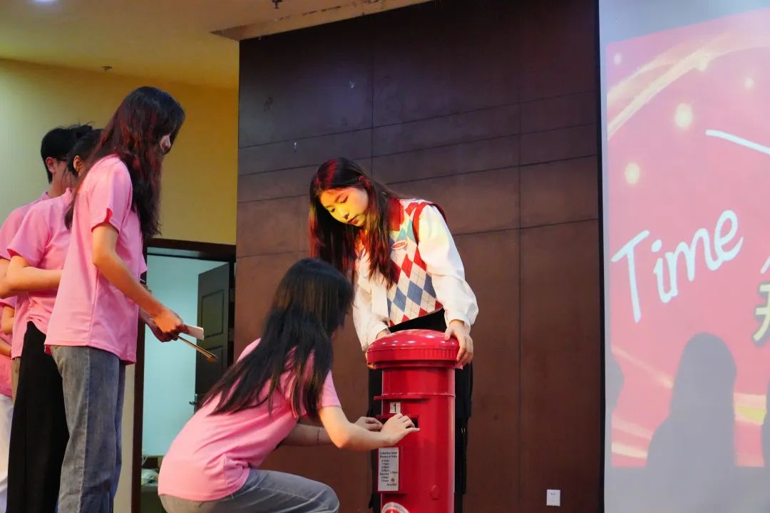 一约既定,万山无阻。为助力新生明确对未来的规划和加深新生对学院归属感,典礼设置了别开生面的“时光胶囊”活动环节,各班代表将班级同学写给“四年后的自己”的时光胶囊投入到邮筒中,这些承载着青春梦想与期许的时光胶囊被正式封存,等待四年后的再次开启,届时同学们将有机会重新回顾自己的成长轨迹,感受时间的力量与生命的奇迹。随后三位新生代表上台,读出自己的时光胶囊,播下初心的种子,许诺将在未来的日子里一往无前。