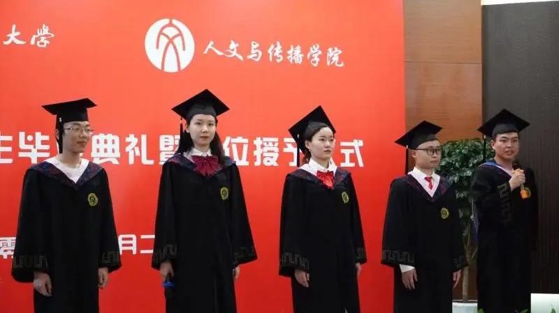 在伍高朋和徐航宇同学的领唱下,全场一起合唱了歌曲《七里香》,在离别之际,用歌声表达对母校的不舍之情。合唱结束后,全体毕业生和导师移步至学涯湖畔,隆重举行金年会jinnianhuicom2021届本科毕业生学位授予仪式。