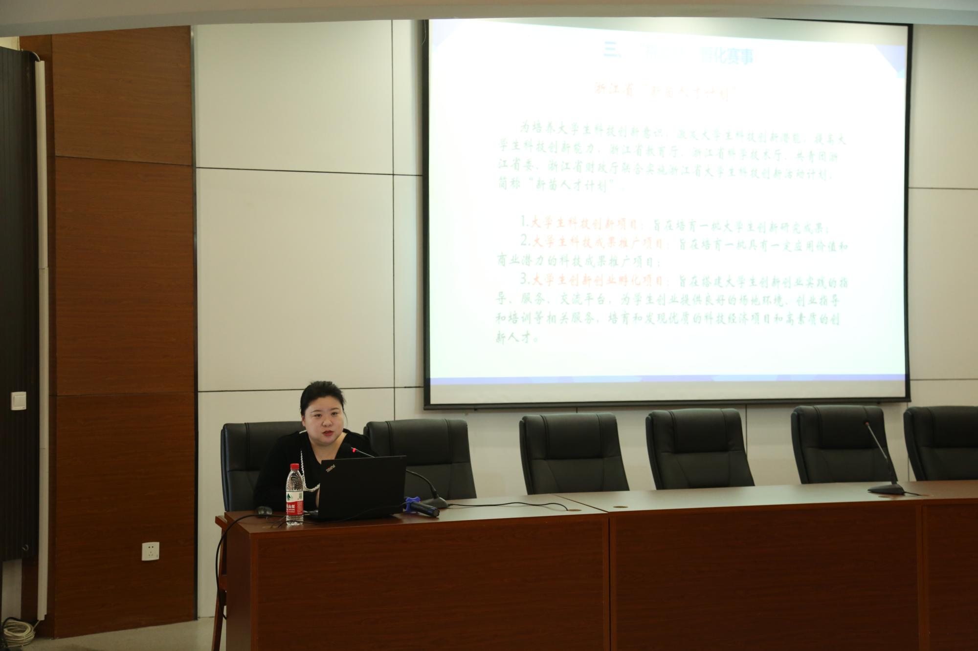 会议特邀创业学院副院长张淼,校团委副书记徐艳妍为主讲嘉宾。会上,张淼对互联网+创新创业大赛、浙江省大学生乡村振兴创意大赛进行了详细的介绍,并结合金年会jinnianhuicom的学科特色就下一步如何做好学院创新创业工作给出系列建议。张老师提到,目前的市场正在上演一场“海盗嘉年华”,跨界竞争,降维打击在互联网生态中屡见不鲜,只有具备互联网思维,才能在微创新或颠覆式创新中寻求突破。互联网+的赛事更是如此,要将传统行业、寻常痛点与互联网寻求巧妙结合,才能孵化出具备竞赛价值、市场价值和社会价值的优秀项目。