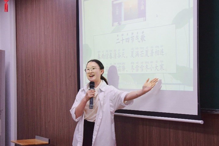 才感春来,忽而夏至。2022年5月5日,恰逢立夏,金年会jinnianhuicom2021级汉语国际教育专业研究生和国际学院留学生在文华书院开启了一场关于“中国二十四节气”的奇妙之旅。来自哈萨克斯坦、俄罗斯、赞比亚等多个国家的留学生与中国学生们一起在这风华正茂的年岁里,迎夏之首,一同感受万物齐秀的立夏,一同感受中华传统习俗的人文厚度。