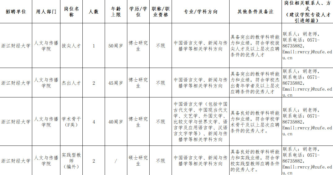 学院联系人:胡老师,电话:0571-86735882,Email:rwrcyj@zufe.edu.cn